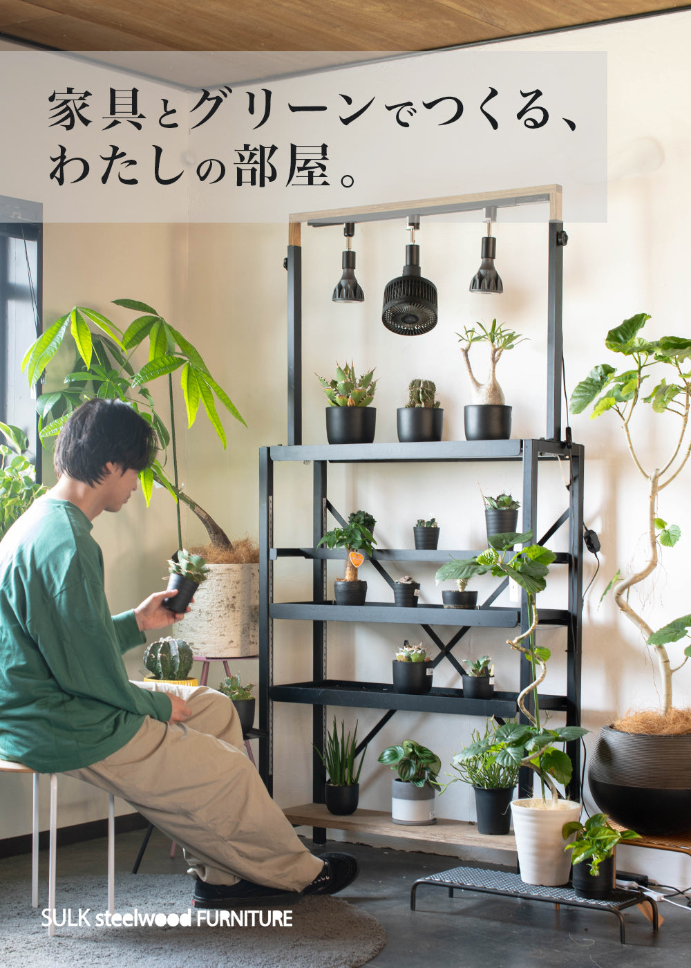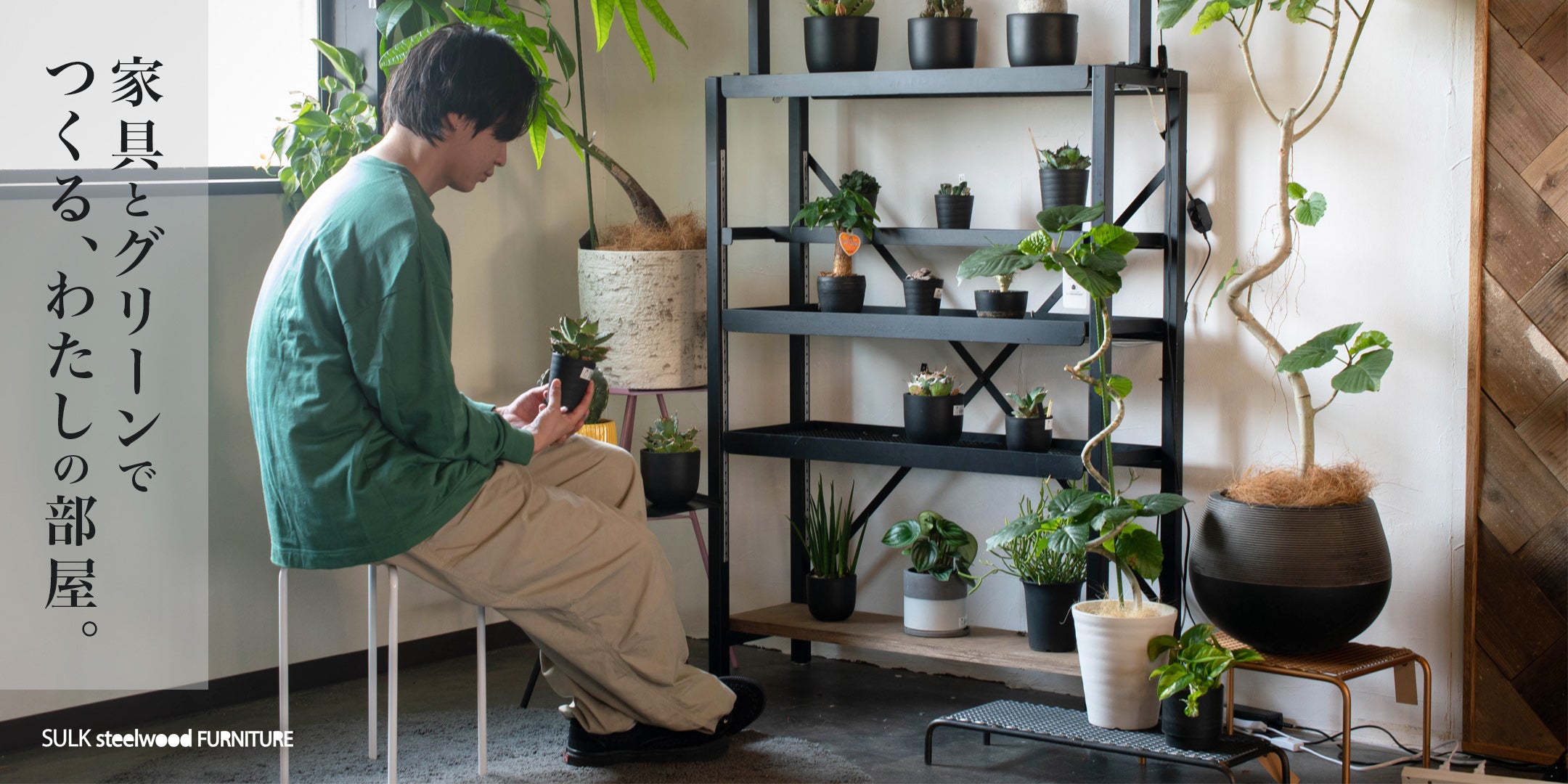 インテリアグリーンをセンス良くディスプレイできるラックやスツールを集めました。